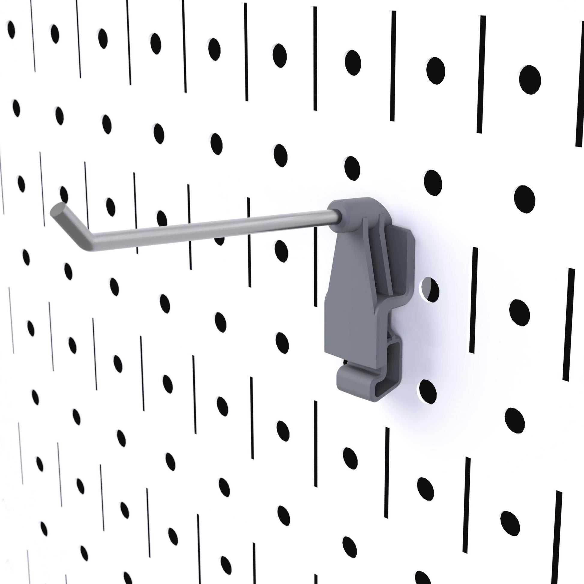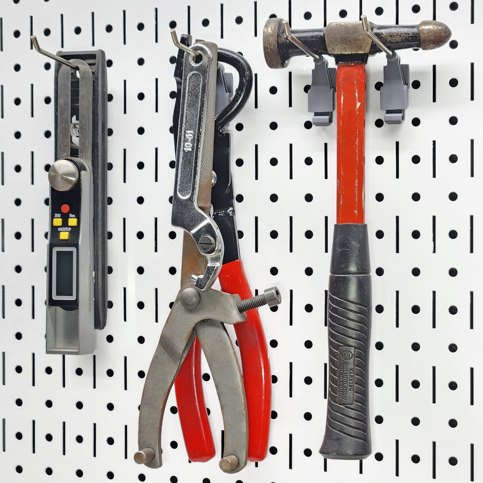 The 113 bracket from TROPEK is a versatile bracket designed to hold any item with a 5/32-inch (4 mm), or larger, hole. Perfect for holding a set of combination wrenches, adjustable wrenches, pipe wrenches, paint brushes, scrapers, putty knives, and more. Any piece of merchandise with a common 1/4-inch hang hole can be held by bracket. Two brackets can be installed in adjacent panel slots to hold a hammer, mallet, ratchet, or scissors. Two brackets can also be used to form a small shelf for holding items such as a level, utility knife, T-square, or tape measure. The bracket snaps into any vertical slot on a Wall Control panel and remains securely in-place during storage and use. The bracket can be easily removed by pressing the release lever on the bottom.